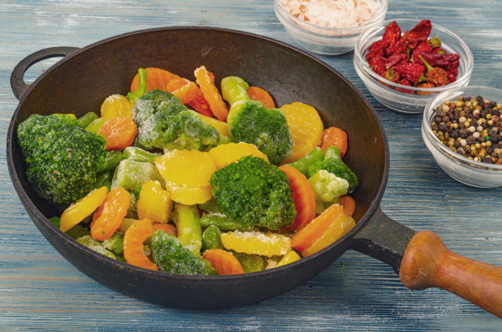 Gebratener Brokkoli, Karotten und Mais