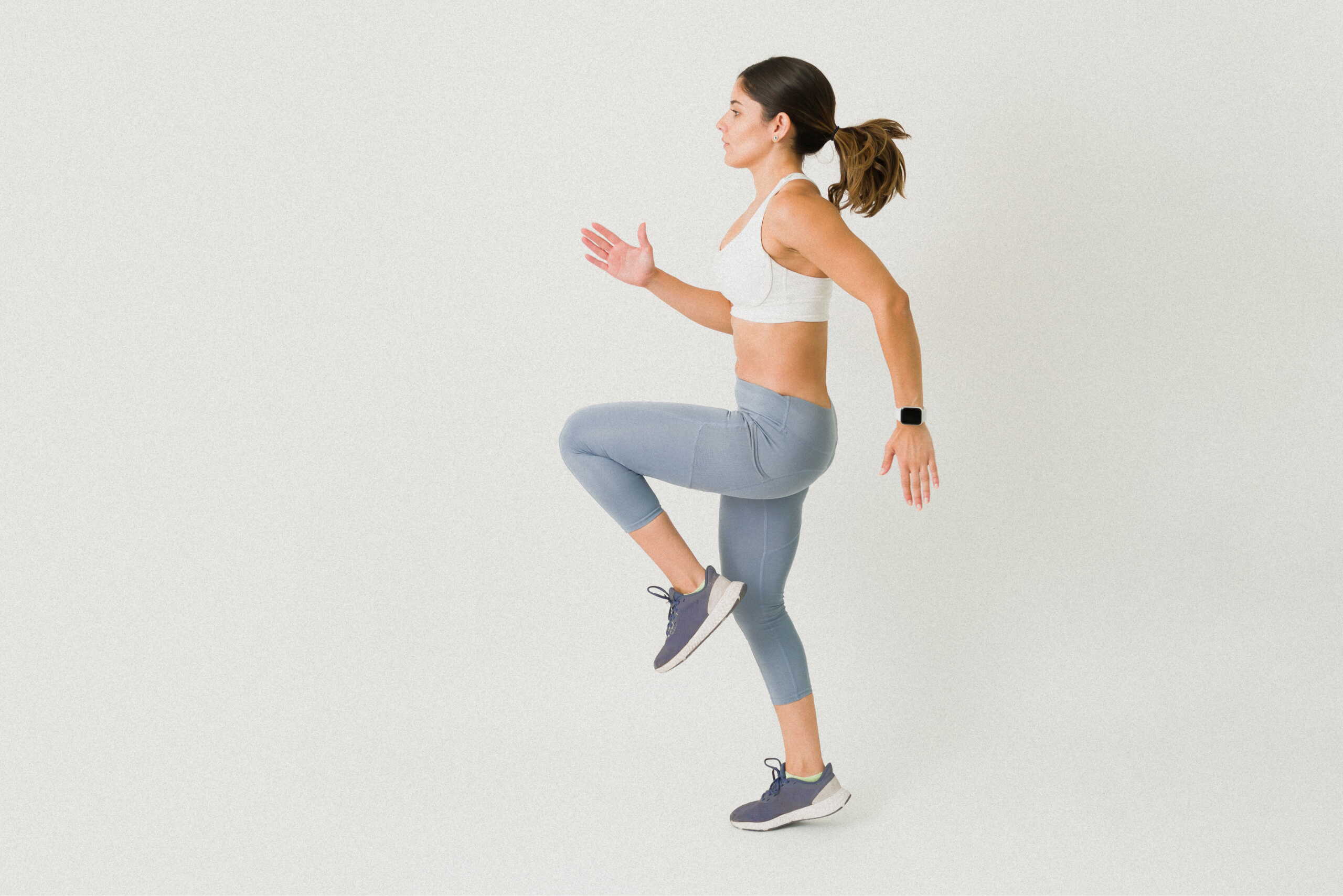 3. Genoux hauts : Pendant 20 secondes, effectuez des mouvements de genoux hauts, en les amenant vers votre poitrine pour un effort maximal.
