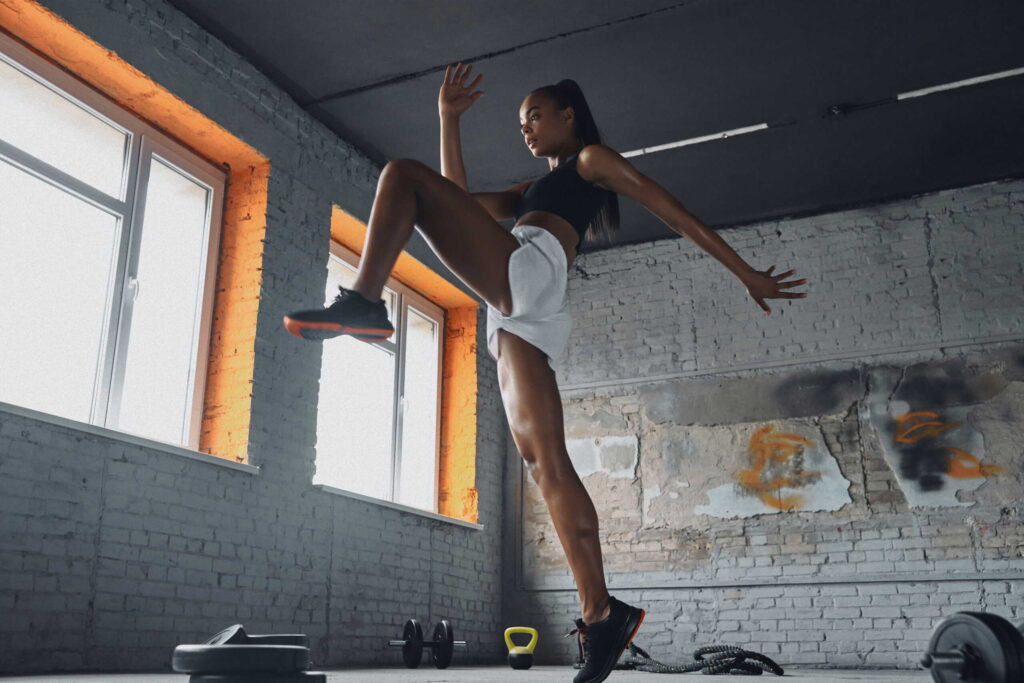 1. Sauts d’obstacles : Allez-y à fond pendant 20 secondes, en maximisant vos sauts et les mouvements de vos bras.