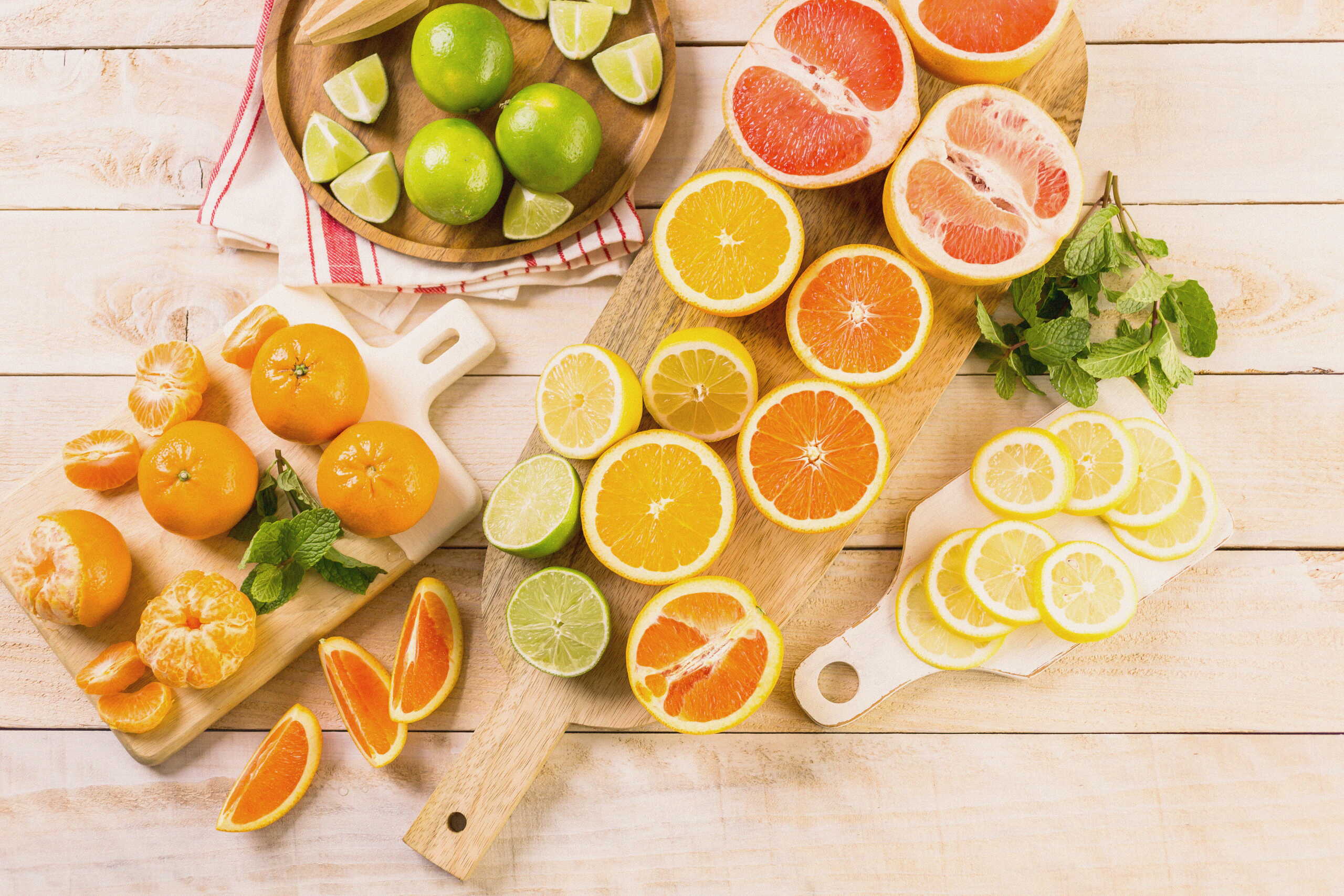 - Buah Sitrus: Jeruk, grapefruit, lemon, dan jeruk nipis merupakan sumber vitamin C yang sangat baik. Nikmati sebagai minuman atau camilan menyegarkan atau masukkan ke dalam salad dan makanan penutup.